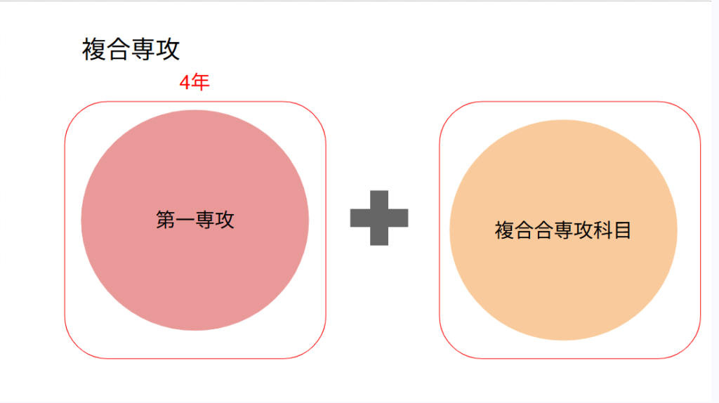 複合専攻とは、4年以内に第一専攻(深化専攻)をし、また新たな専攻科目の単位取ります。