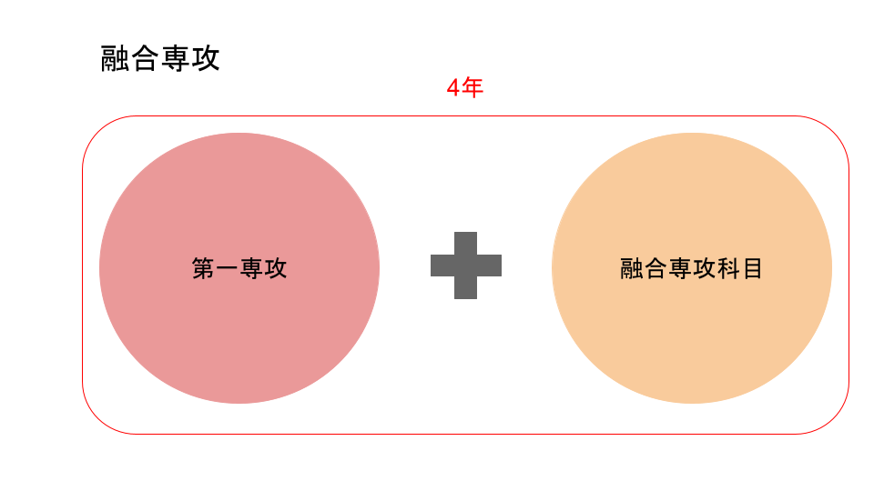 融合専攻は、4年間で第一専攻に加えて融合専攻の科目を履修するというものです。